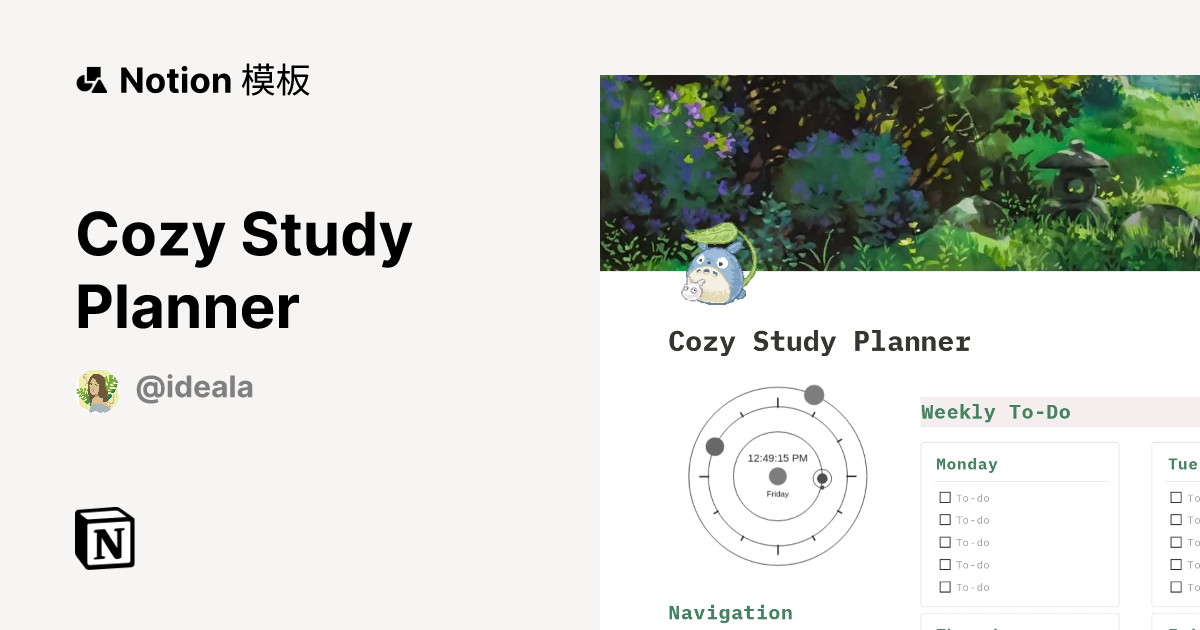 来自 IdeaLa 的 Cozy Study Planner 模板|Notion市集