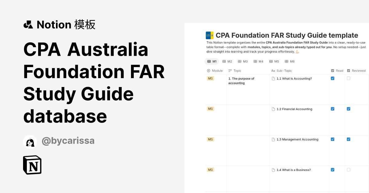 来自 Carissa 的 CPA Australia Foundation FAR Study Guide database 模板|Notion市集