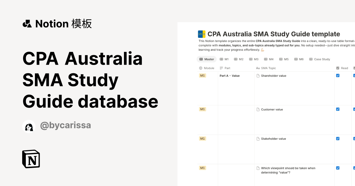 来自 Carissa 的 CPA Australia SMA Study Guide database 模板|Notion市集