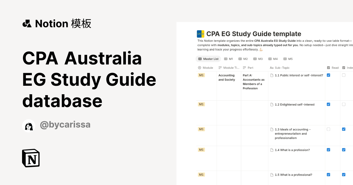 来自 Carissa 的 CPA Australia EG Study Guide database 模板|Notion市集
