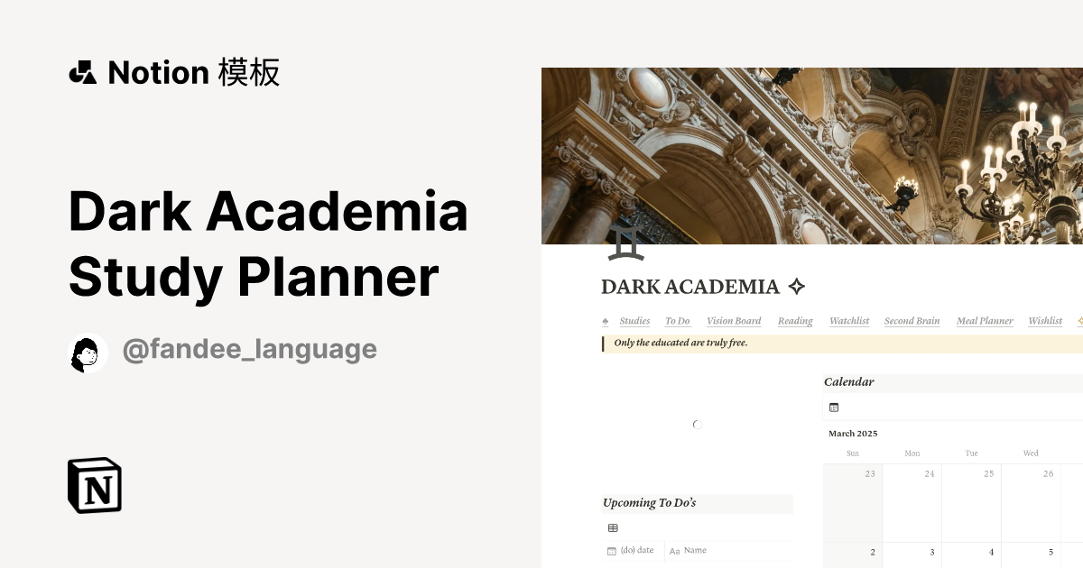 来自 fandee 的 Dark Academia Study Planner 模板|Notion市集
