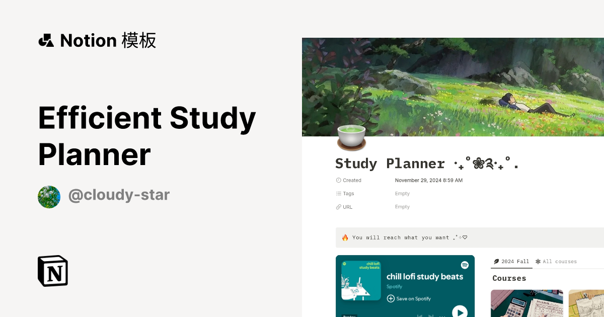 来自 Cloudy star ₊˚⊹♡ 的 Efficient Study Planner 模板|Notion市集
