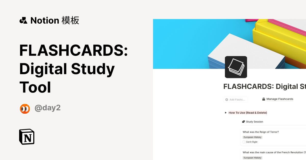来自 DAY 的 FLASHCARDS: Digital Study Tool 模板|Notion市集