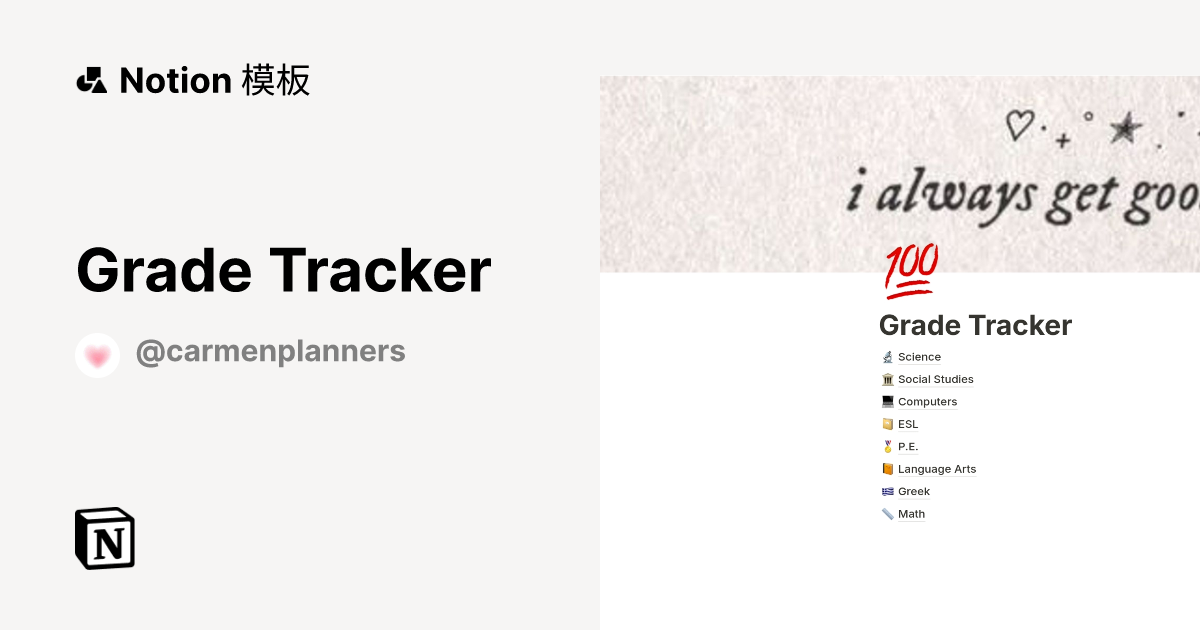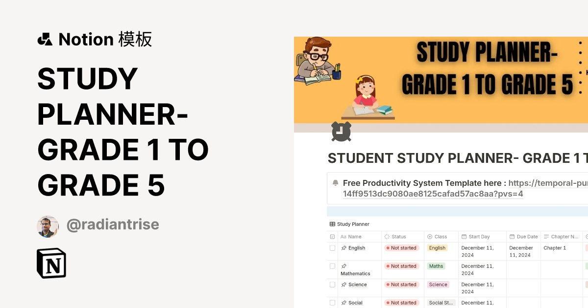 STUDY PLANNER- GRADE 1 TO GRADE 5 模板 | Notion 市集