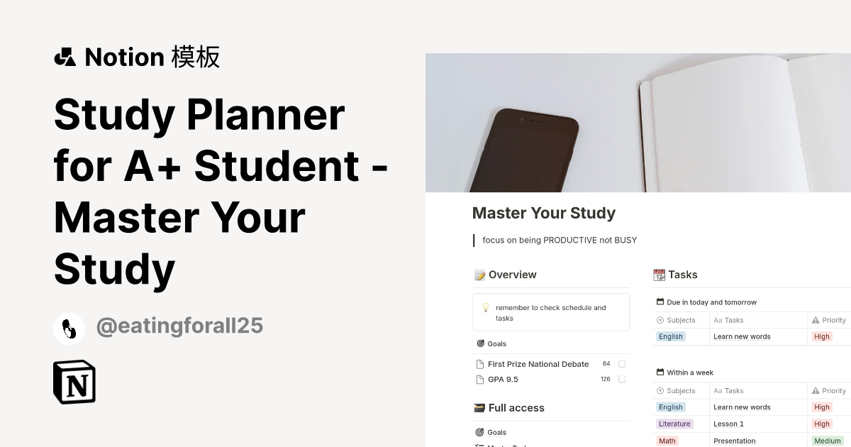 Study Planner for A+ Student - Master Your Study 模板 | Notion 市集