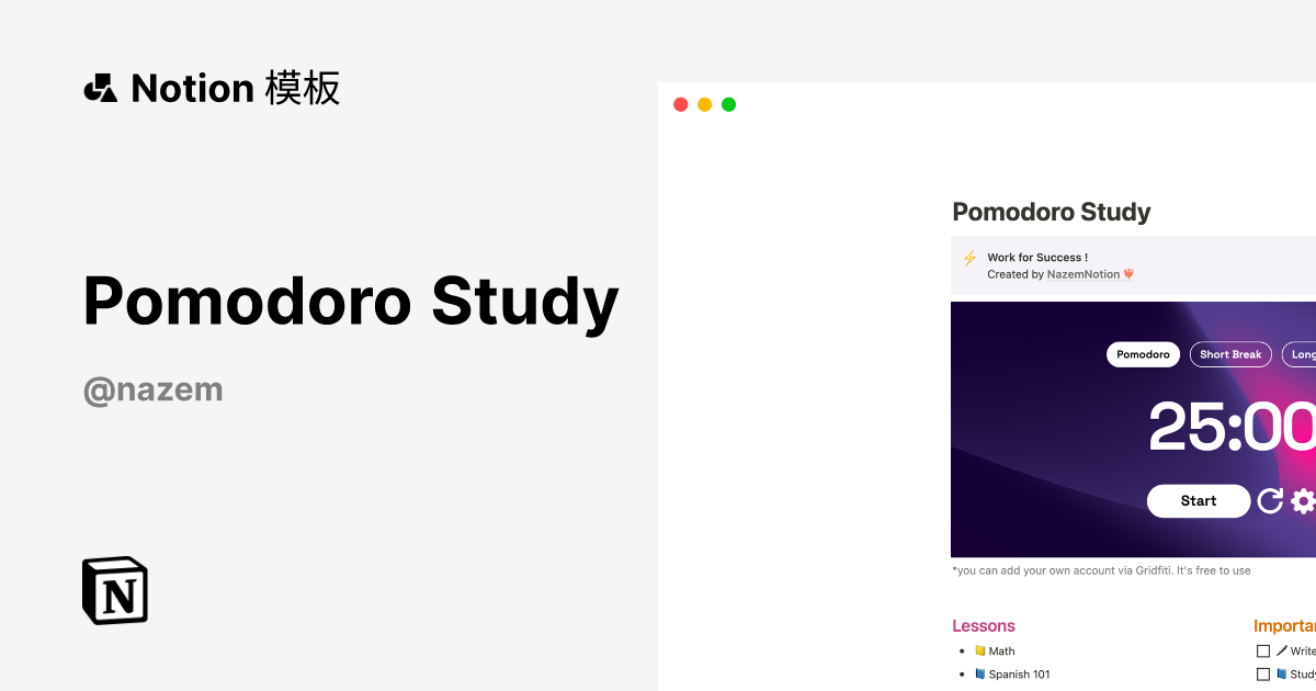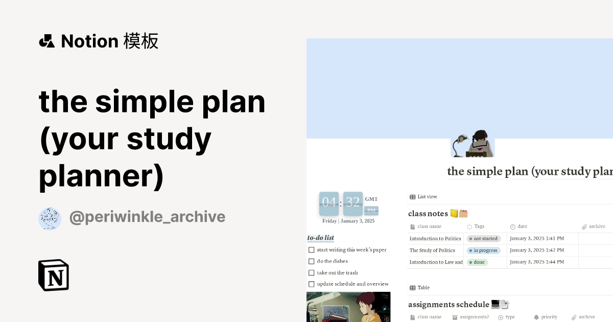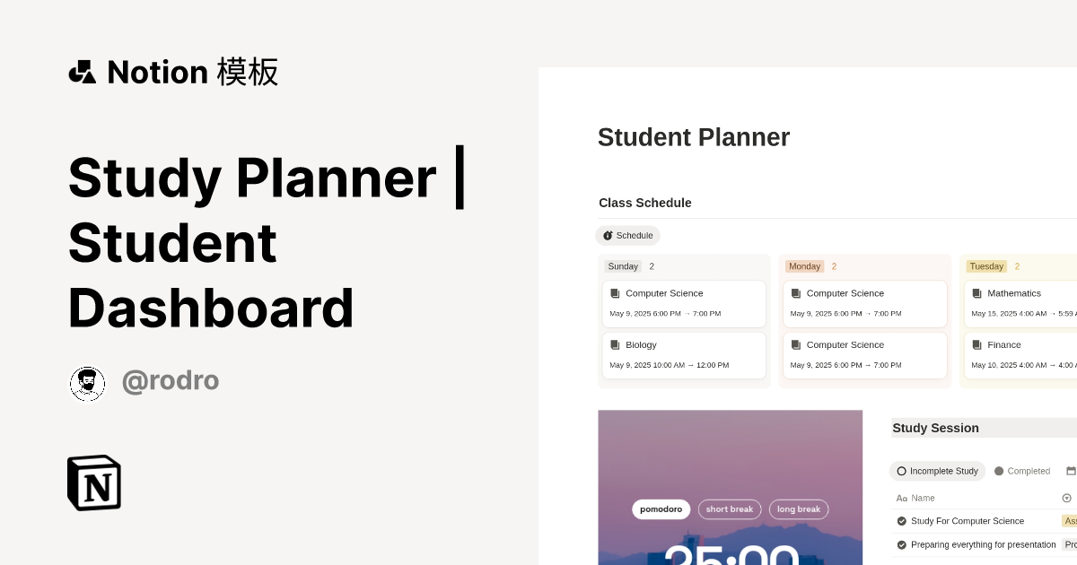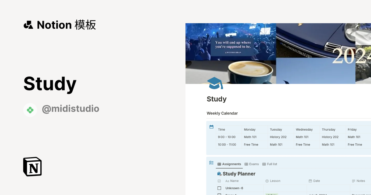 Study Planner | Student Dashboard 模板 | Notion 市集