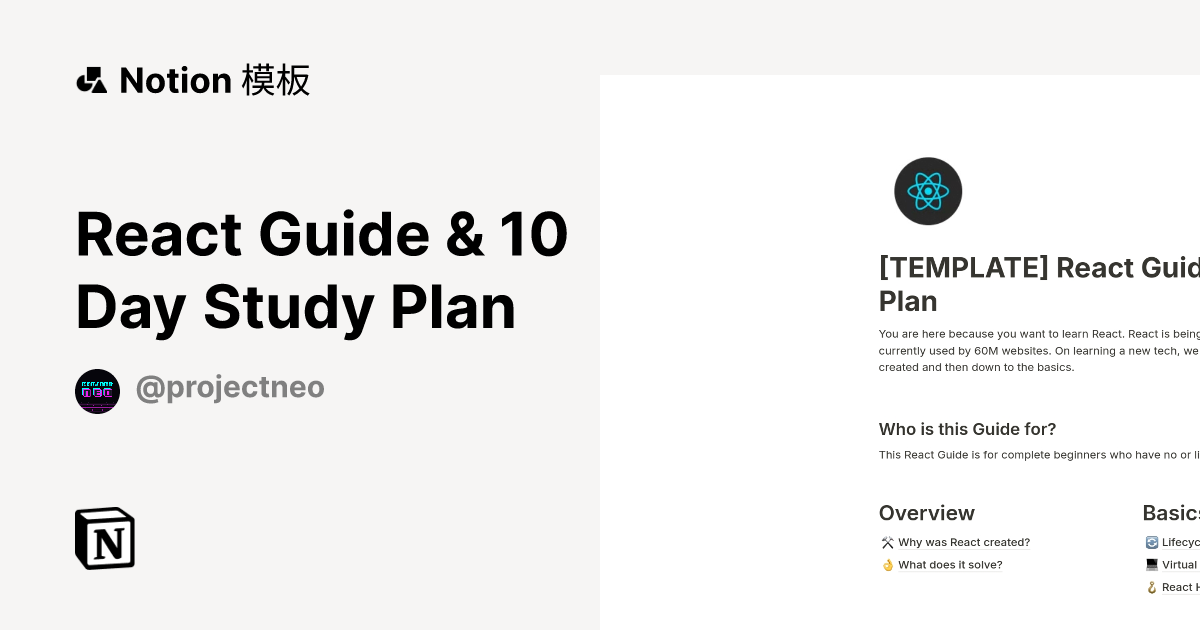 来自 Project Neo 的 React Guide & 10 Day Study Plan 模板|Notion市集