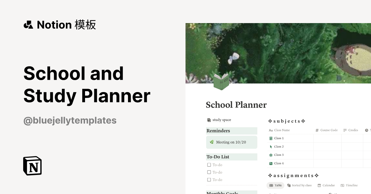 来自 Blue Jelly 的 School and Study Planner 模板|Notion市集