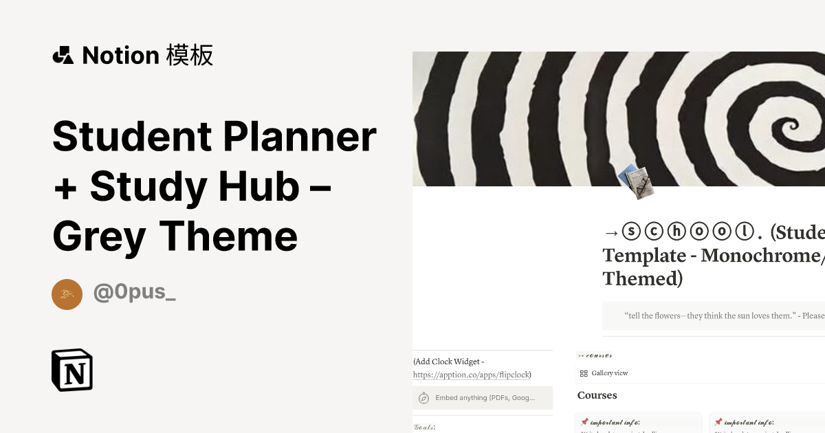 来自 0PUS 的 Student Planner + Study Hub – Grey Theme 模板|Notion市集