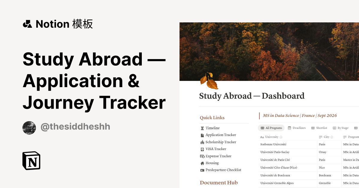 Study Abroad — Application & Journey Tracker 模板 | Notion 市集