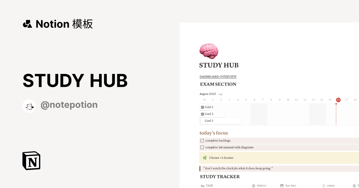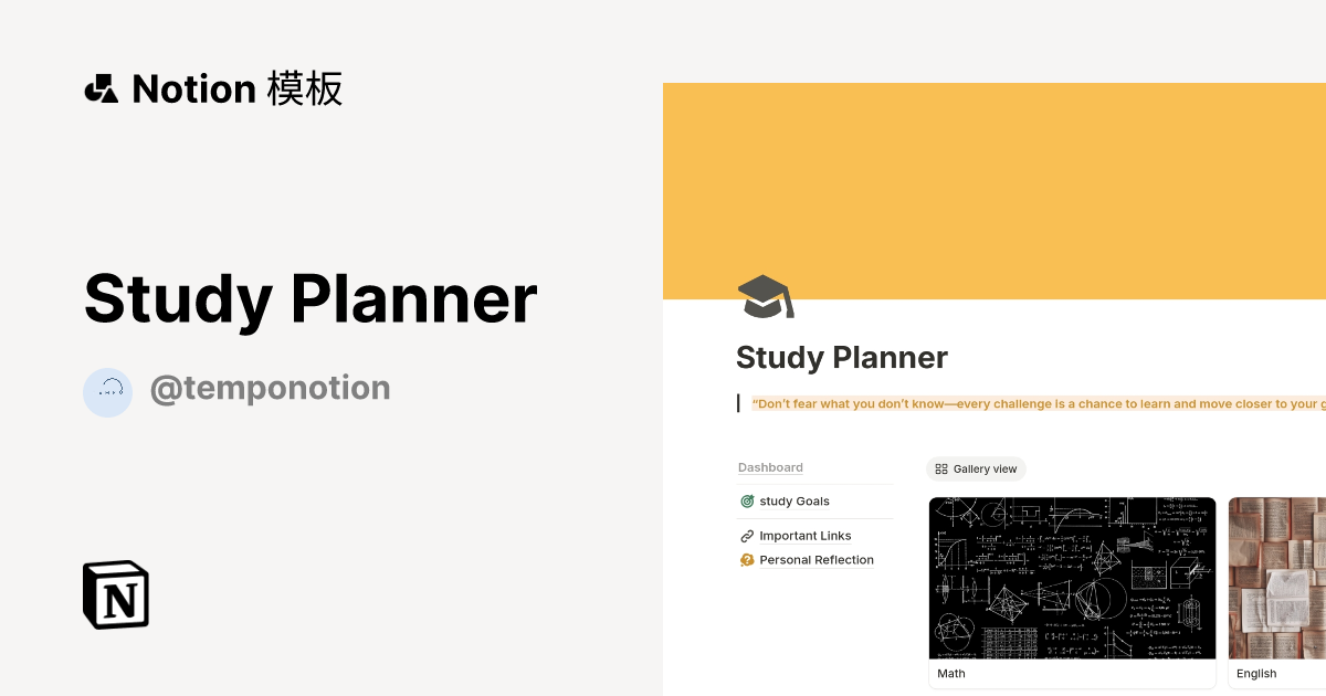 Study Kit: Organization, Planning & Progress 模板 | Notion 市集