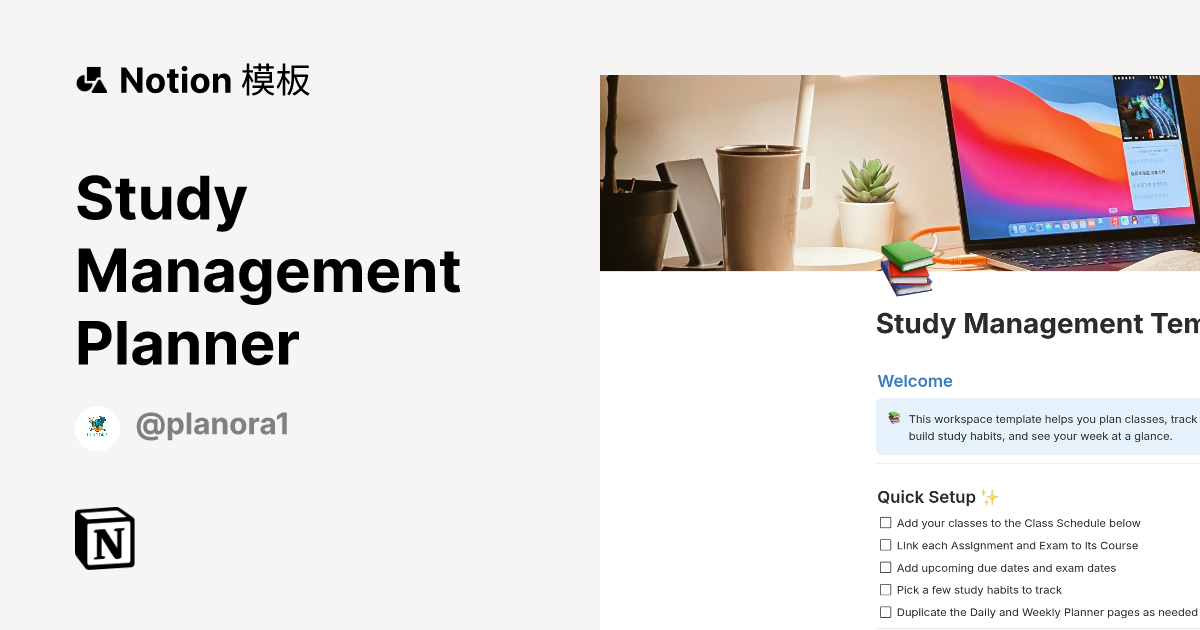 来自 Planora 的 Study Management Planner 模板|Notion市集