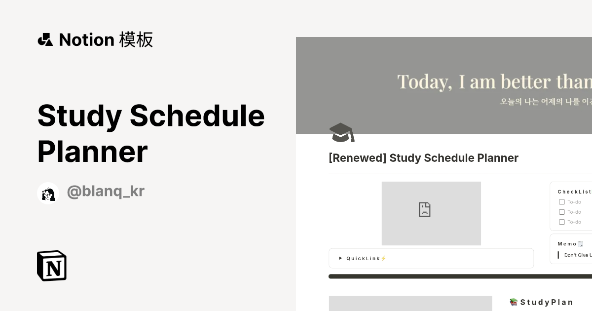来自 blanq 的 Study Schedule Planner 模板|Notion市集