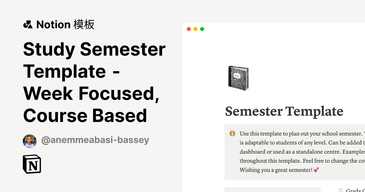 Study Semester Template - Week Focused, Course Based 模板 | Notion 市集