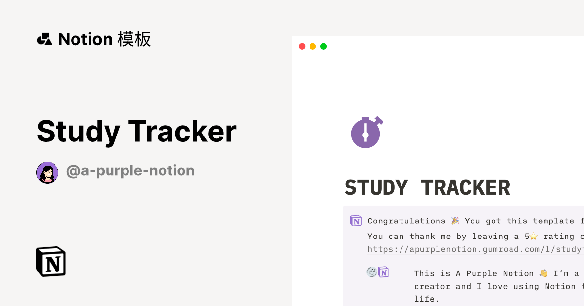 来自 A Purple Notion 的 Study Tracker 模板|Notion市集