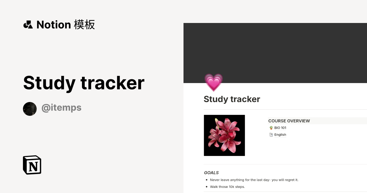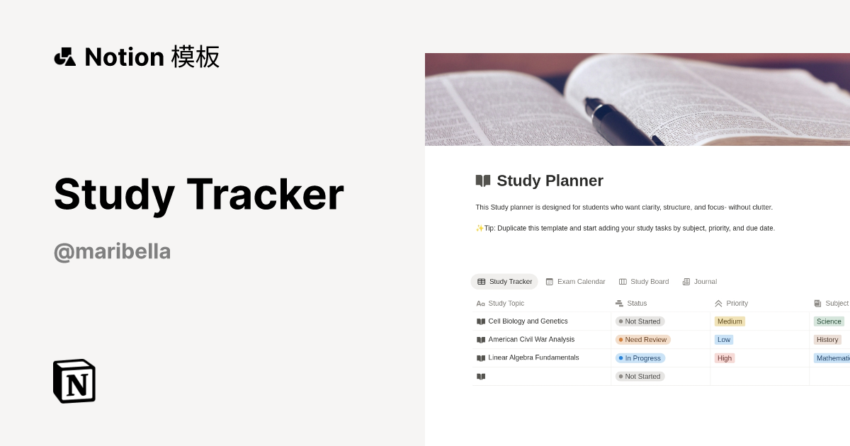 来自 MariBella 的 Study Tracker 模板|Notion市集
