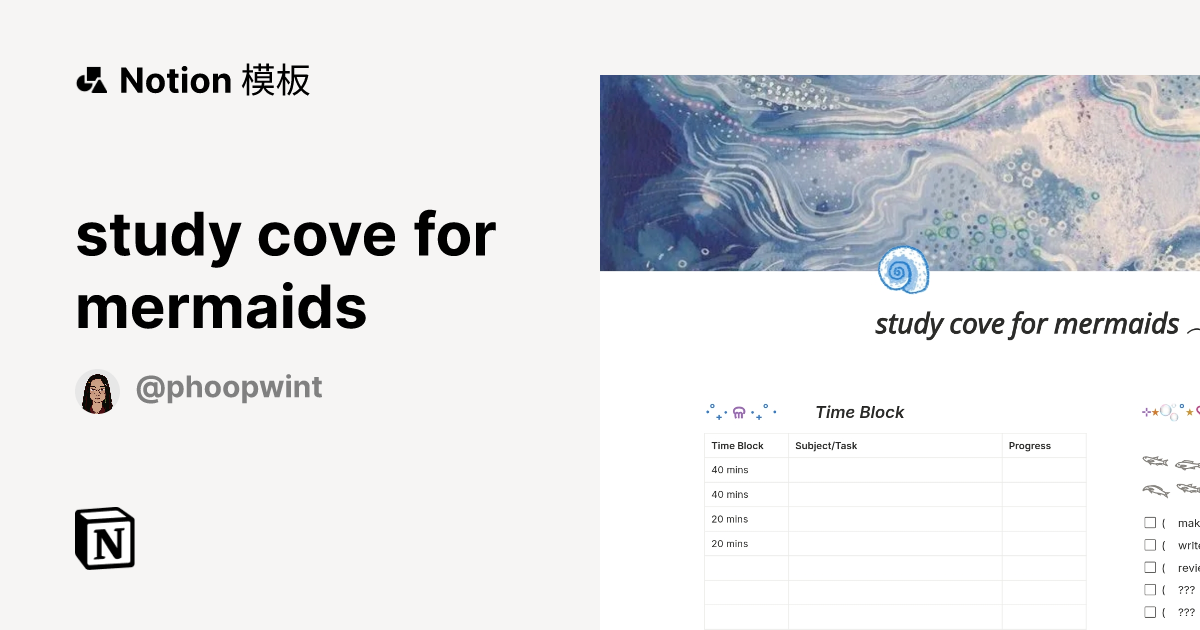 来自 Phoo Pwint 的 study cove for mermaids 模板|Notion市集