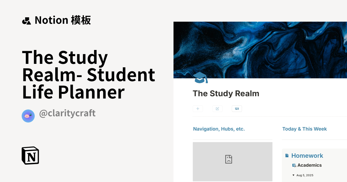 The Study Realm- Student Life Planner 模板 | Notion 市集