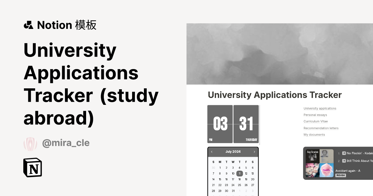 University Applications Tracker (study abroad) 模板 | Notion 市集