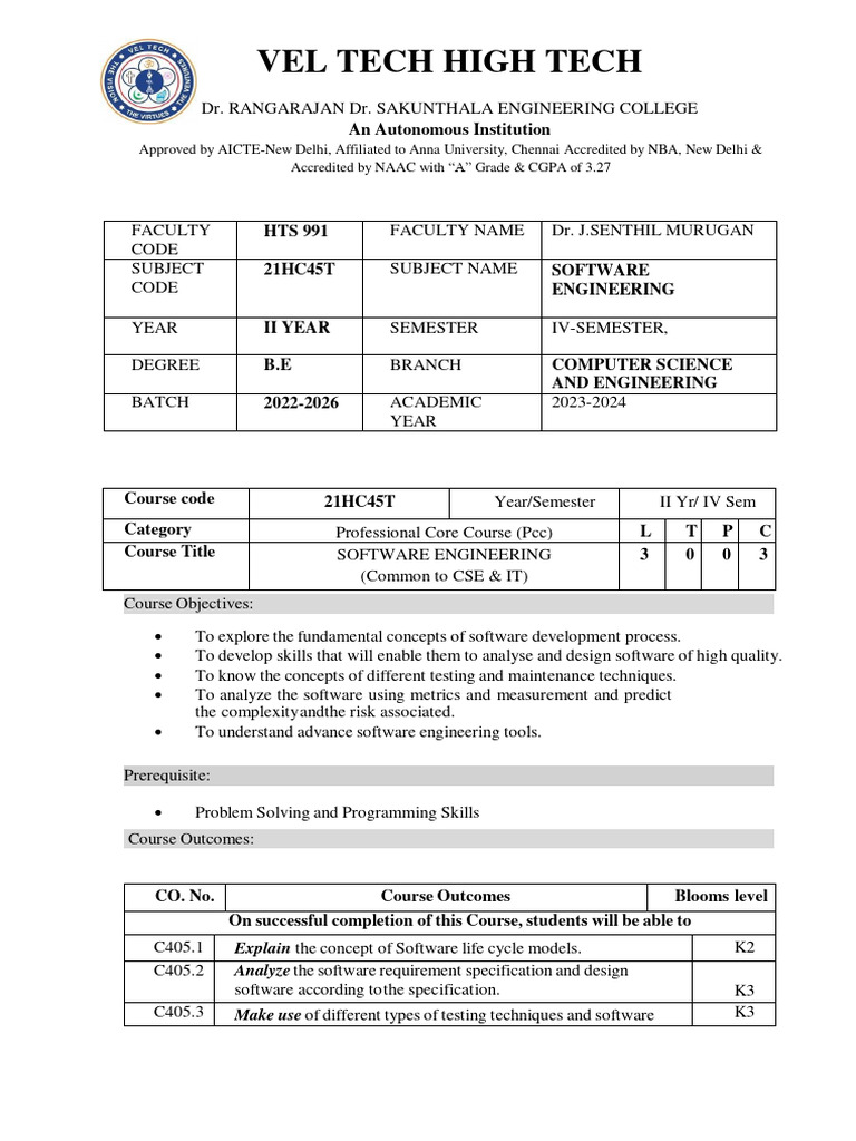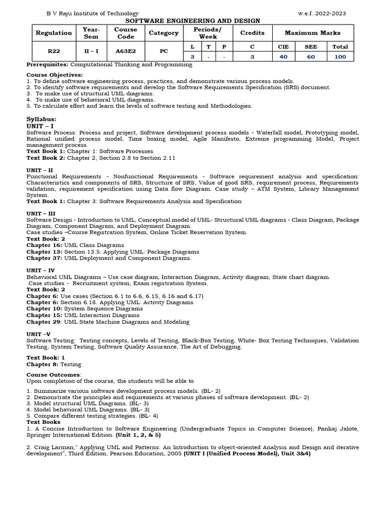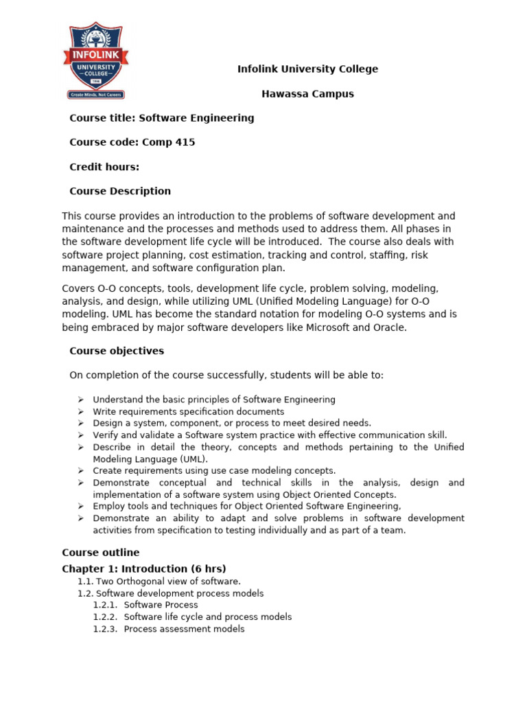Comprehensive Guide to Software Engineering Course Syllabus | Course Hero