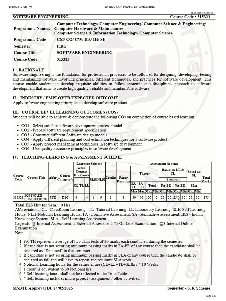 Software Engineering Syllabus 315323 | PDF | Agile Software Development ...