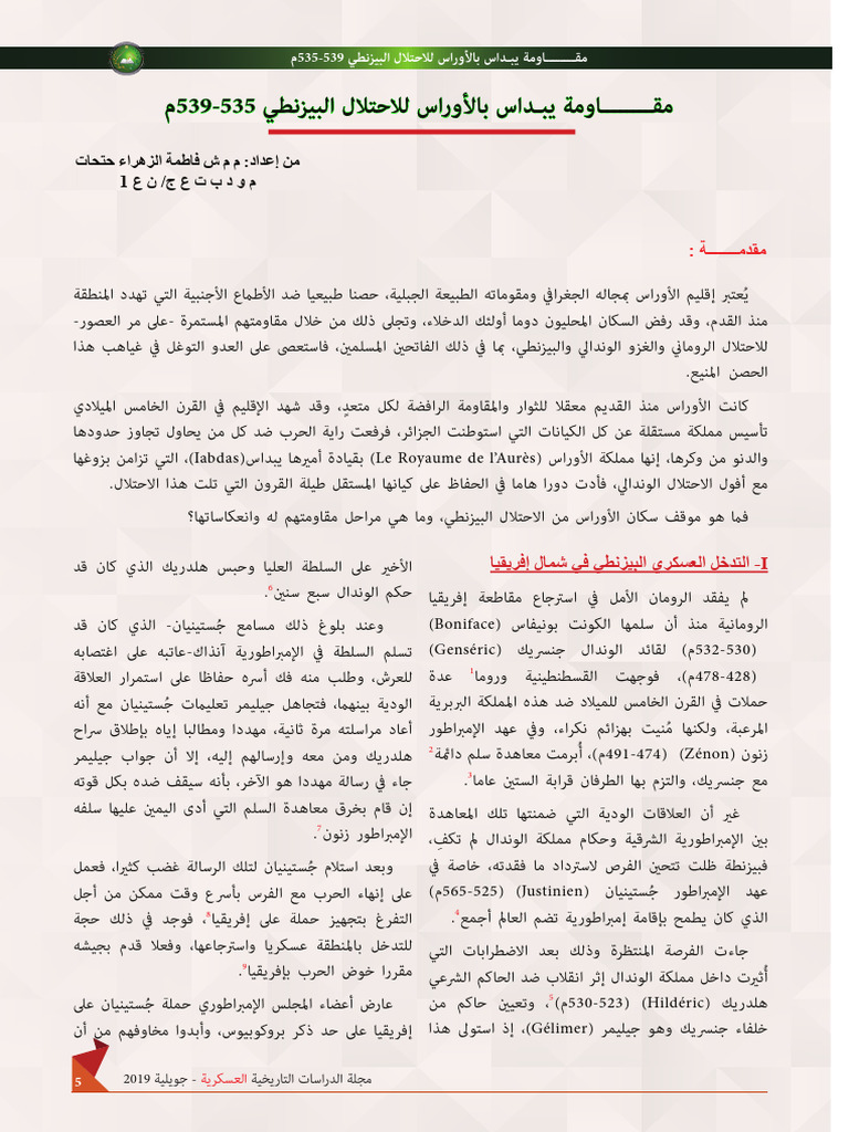 مقاومة يبداس بالأوراس للاحتلال البيزنطي 535 - 539 م | PDF