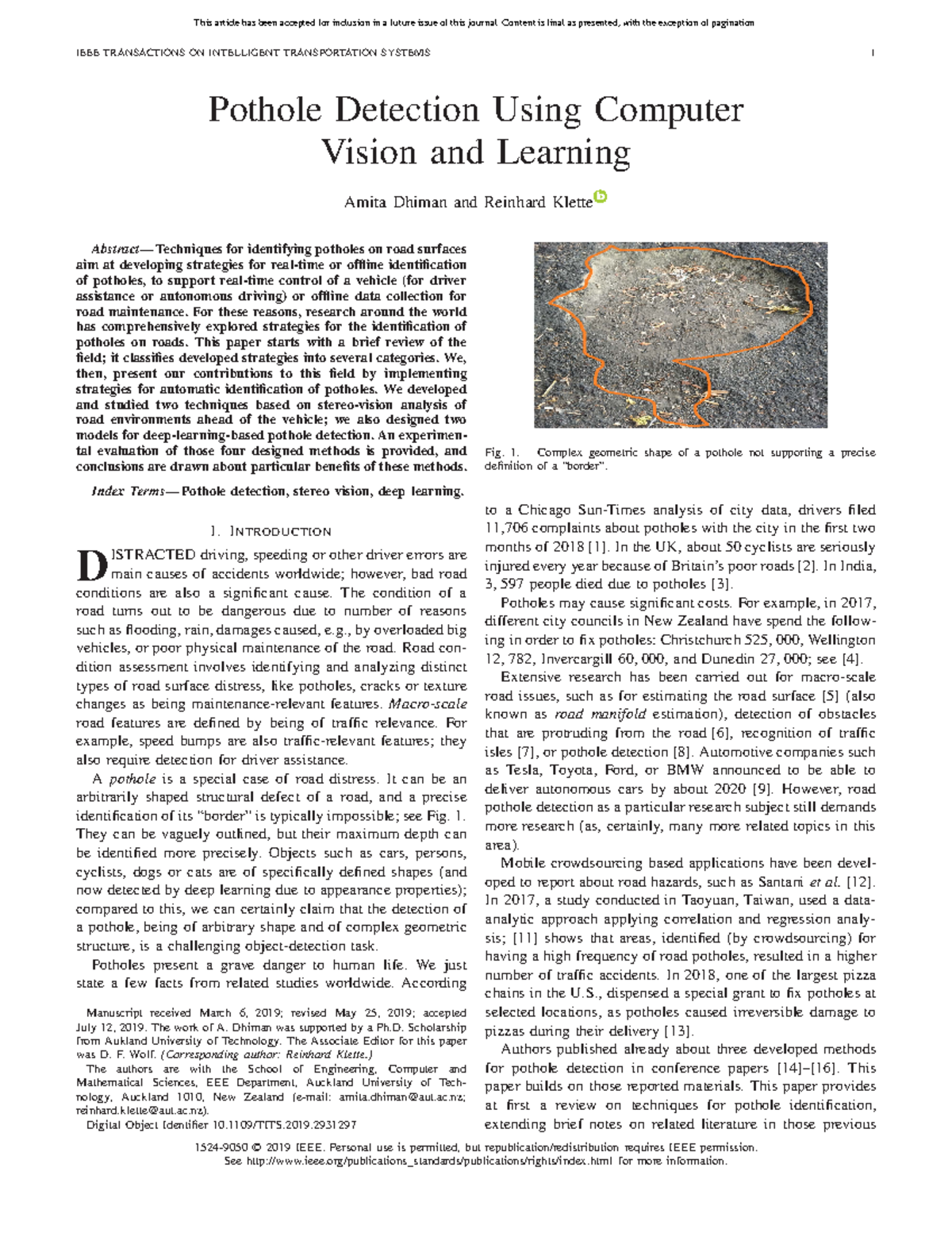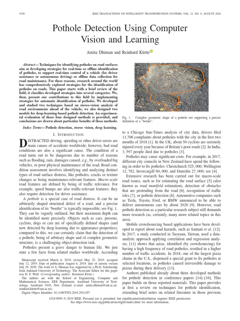 8. Pothole Detection Using Computer Vision and Learning - IEEE ...