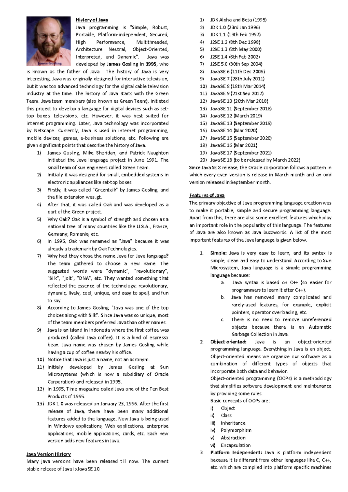 Java full notes - java - History of Java Java programming is "Simple ...