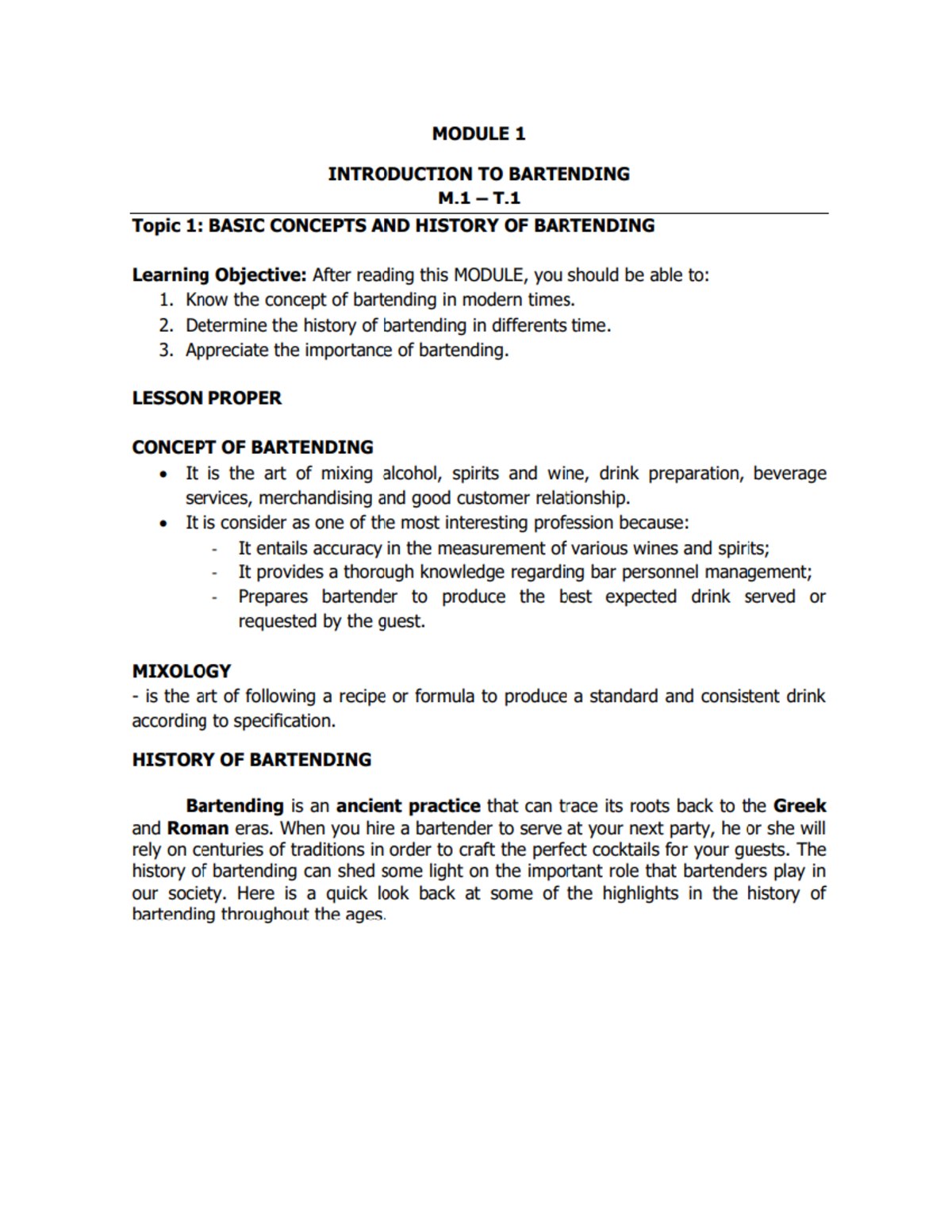 Module 1: Intro to Bartending Concepts & History - FBS - Studocu