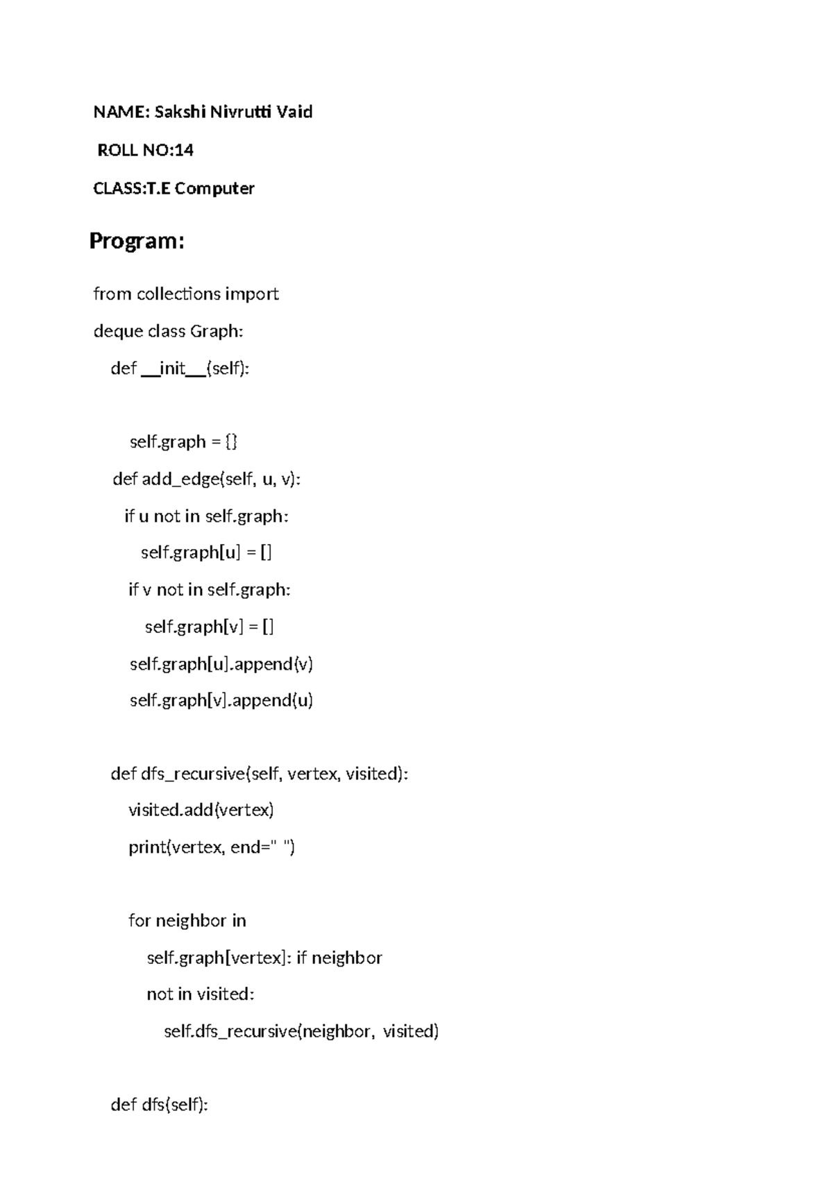 T.E Computer - Graph Traversal Algorithms in Python - Studocu