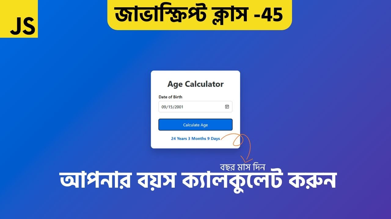 Javascript Project Class - 45 Age Calculator Using HTML CSS JavaScript ...