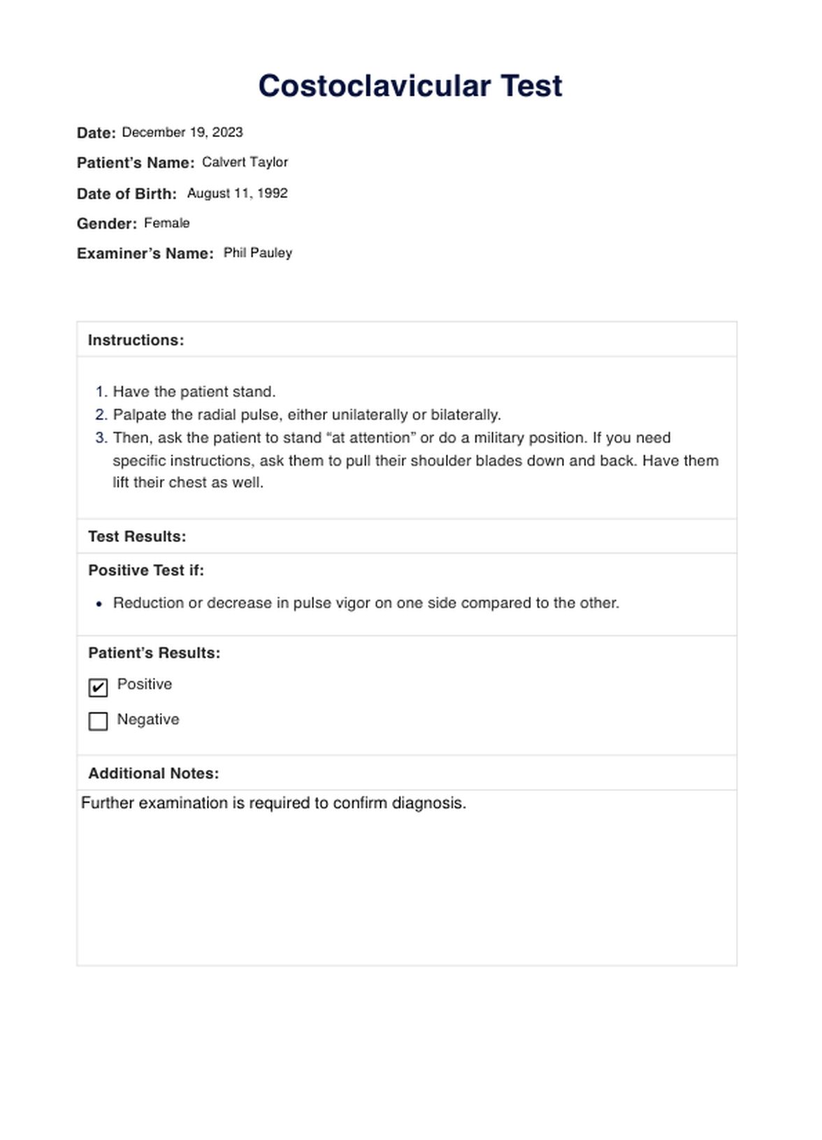 Based on this image's title: “Costoclavicular Test & Example | Free PDF Download”