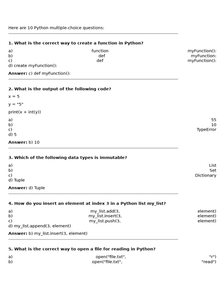 Introduction To Python MCQ | PDF | Python (Programming Language ...