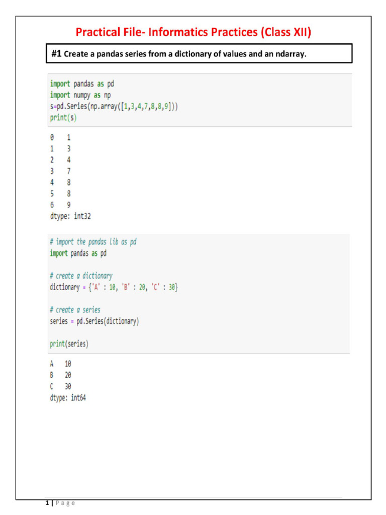 Class 12 Practical File Informatics Practices (1) - 1 | PDF
