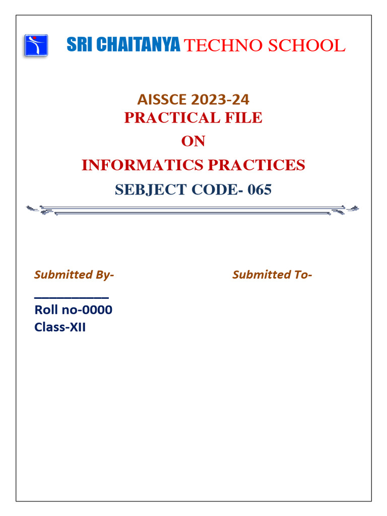 INFORMATICS PRACTICES (065) Class XII Practical File Overview - Studocu