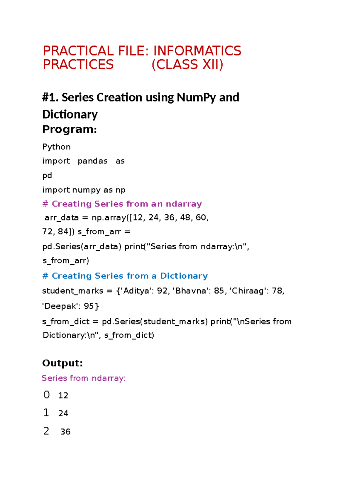 PRACTICAL FILE: INFORMATICS PRACTICES (CLASS XII) - NumPy & Data ...