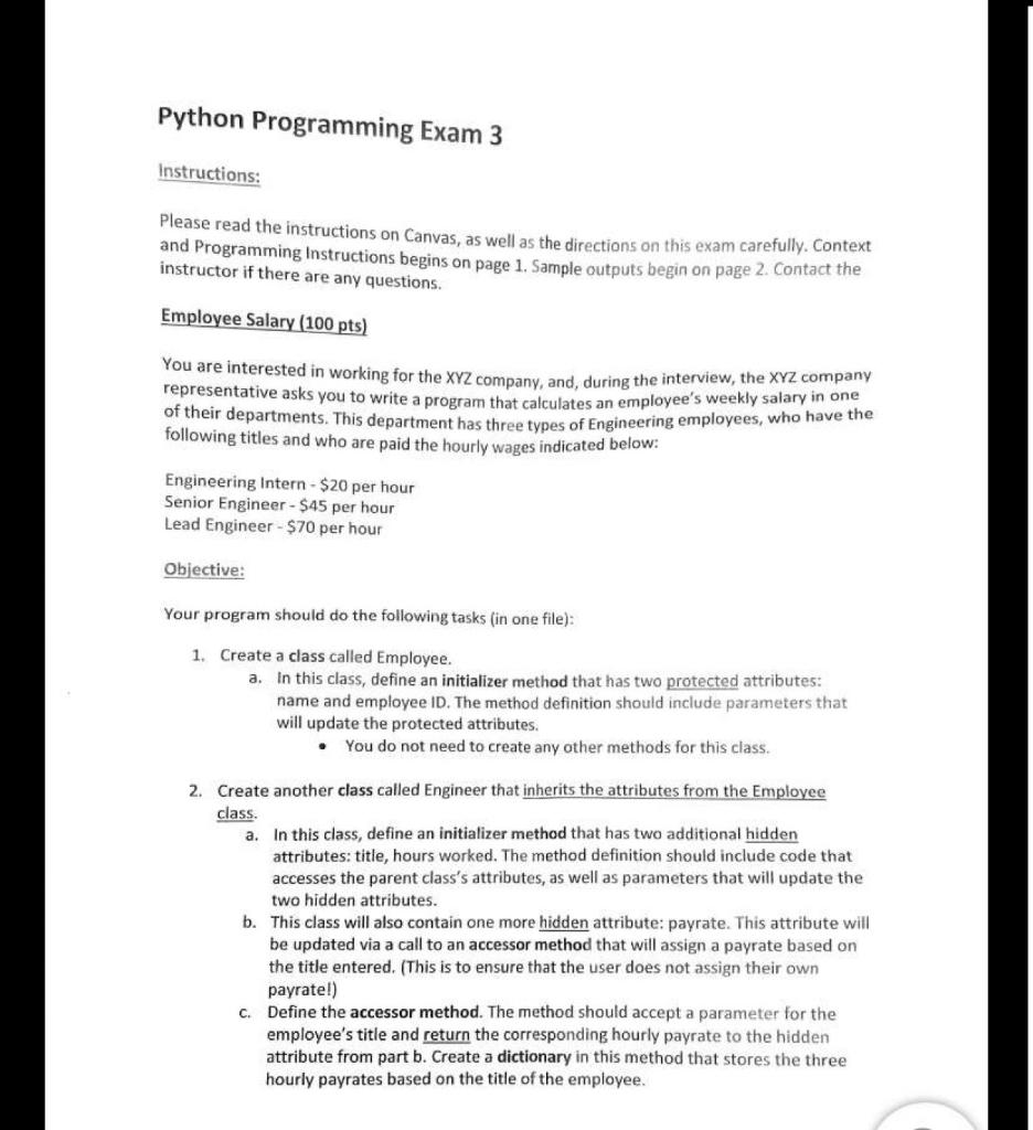 Solved Python Programming Exam 3 Instructions: Please read | Chegg.com
