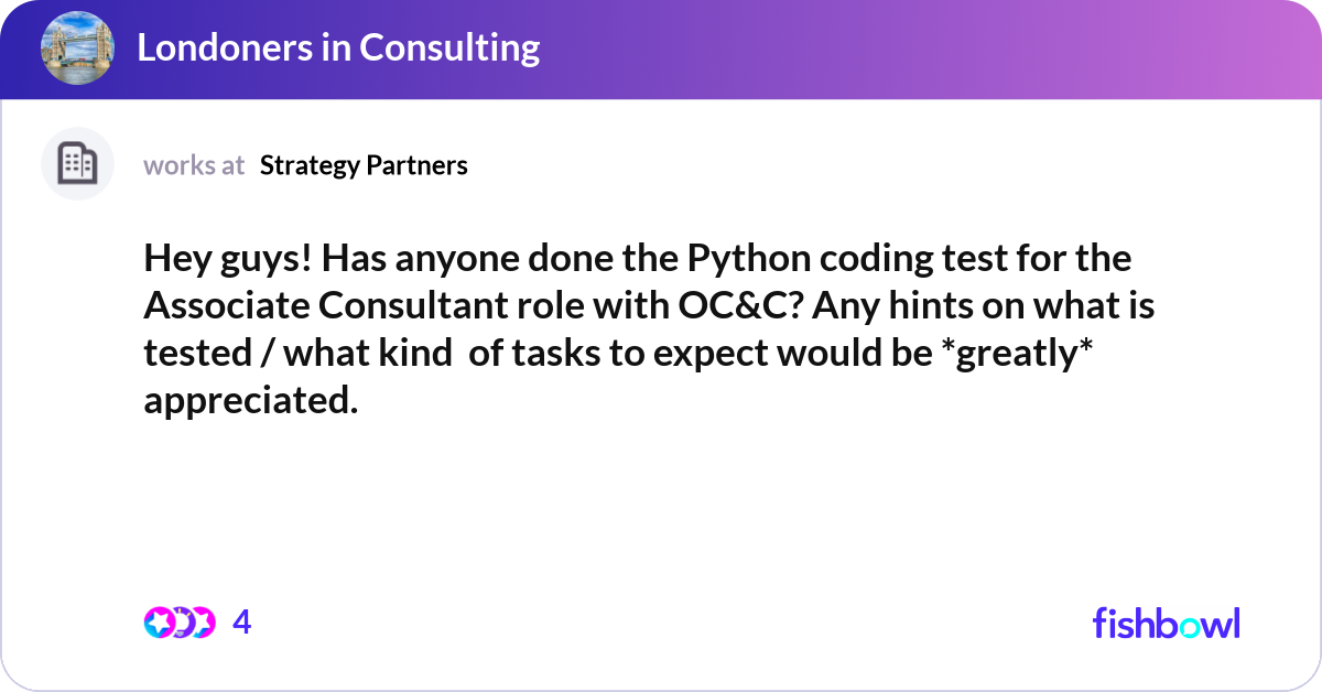 Hey guys! Has anyone done the Python coding test f... | Fishbowl
