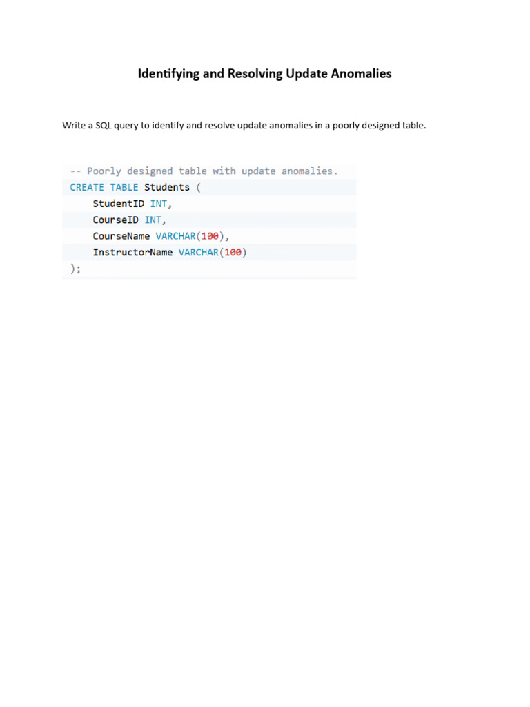 Identifying and Resolving Update Anomalies | PDF