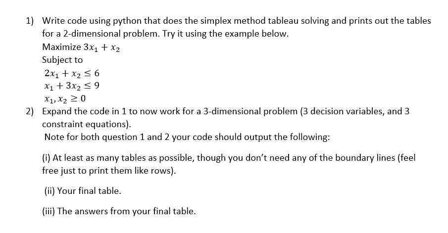 Based on this image's title: “1) Write code using python that does the simplex | Chegg.com”