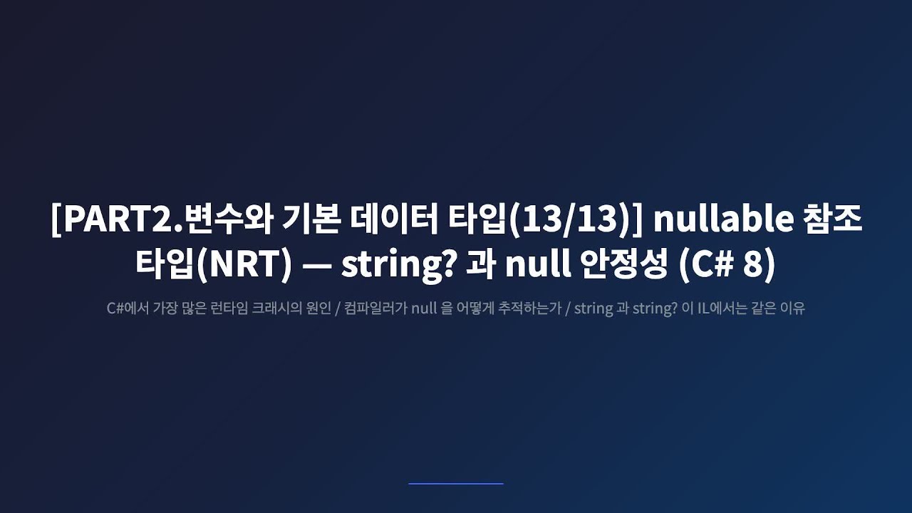 [PART2.변수와 기본 데이터 타입(13/13)] C# string? 물음표 하나, 10억 달러 실수를 뒤집다 - YouTube