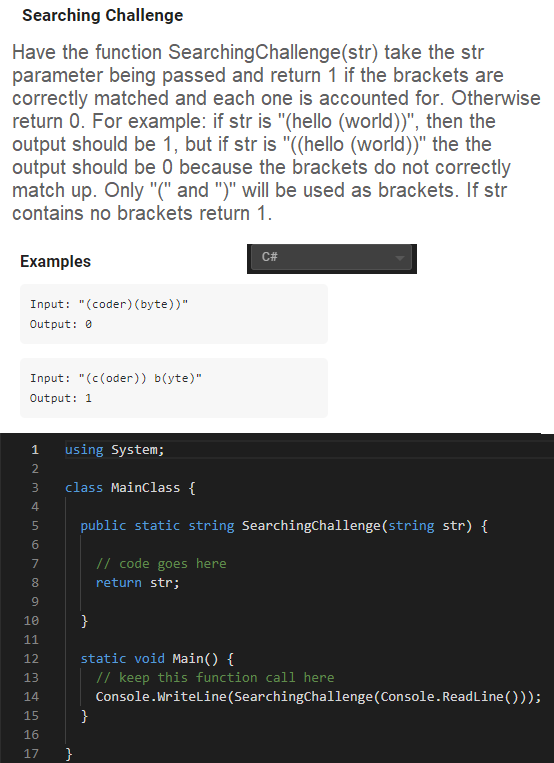 Solved Have the function Searching Challenge (strArr) take | Chegg.com