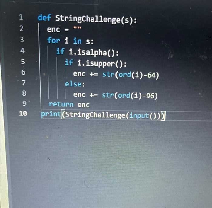 python code pls have the function stringchallenge str take the str ...