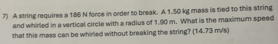 Solved: A string requires a 186 N force in order to break. A 1.50 kg ...