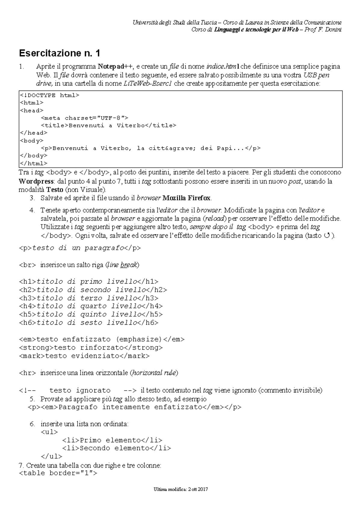 Esercitazione 1 - la base per imparare a scrivere un codice html ...