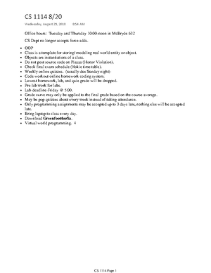 CS-1114 - Notes - Week 14 - CS-1114: Week XIV Homework: Upcoming ...