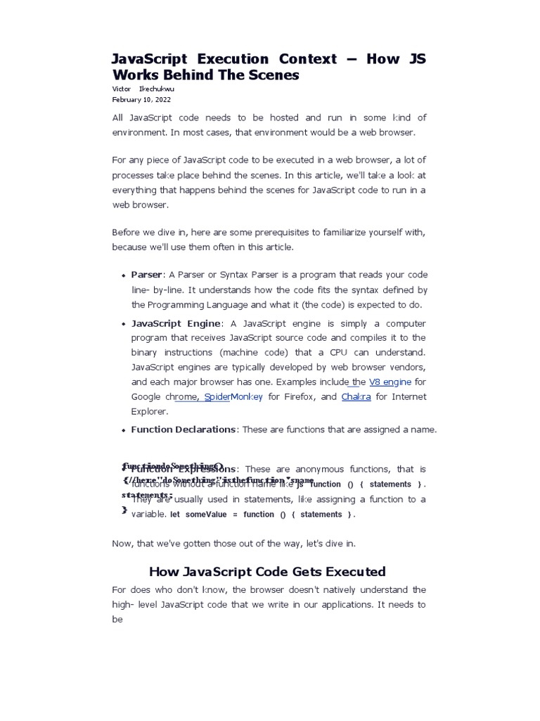 JavaScript Execution Context - How JS Works Behind The Scenes | PDF ...