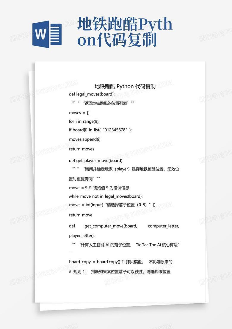 地铁跑酷python代码复制Word模板下载_编号lxbewxjx_熊猫办公