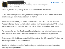 Oracle Lays off 3,000 Global, 100+ in India Offices. AI First, People ...
