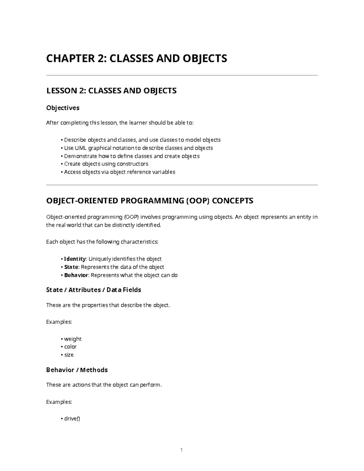 CHAPTER 2 REVIEWER: CLASSES AND OBJECTS (OOP) - Studocu